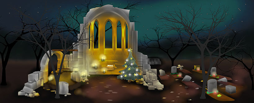 Ausschnitt aus sich veränderden Sandbild zur Weihnachtsgeschichte